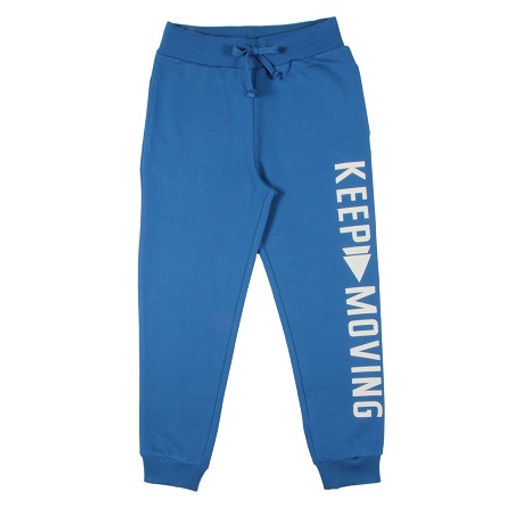 Брюки с карманами в боковых швах, притачным поясом и манжетами. В пояс вставлена резинка. Пояс и манжеты выполнены из полотна с эластаном. На левой передней половинке стильный принт.