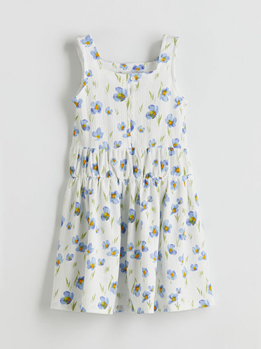Kare Yaka ?i?ekli K?z ?ocuk Elbise