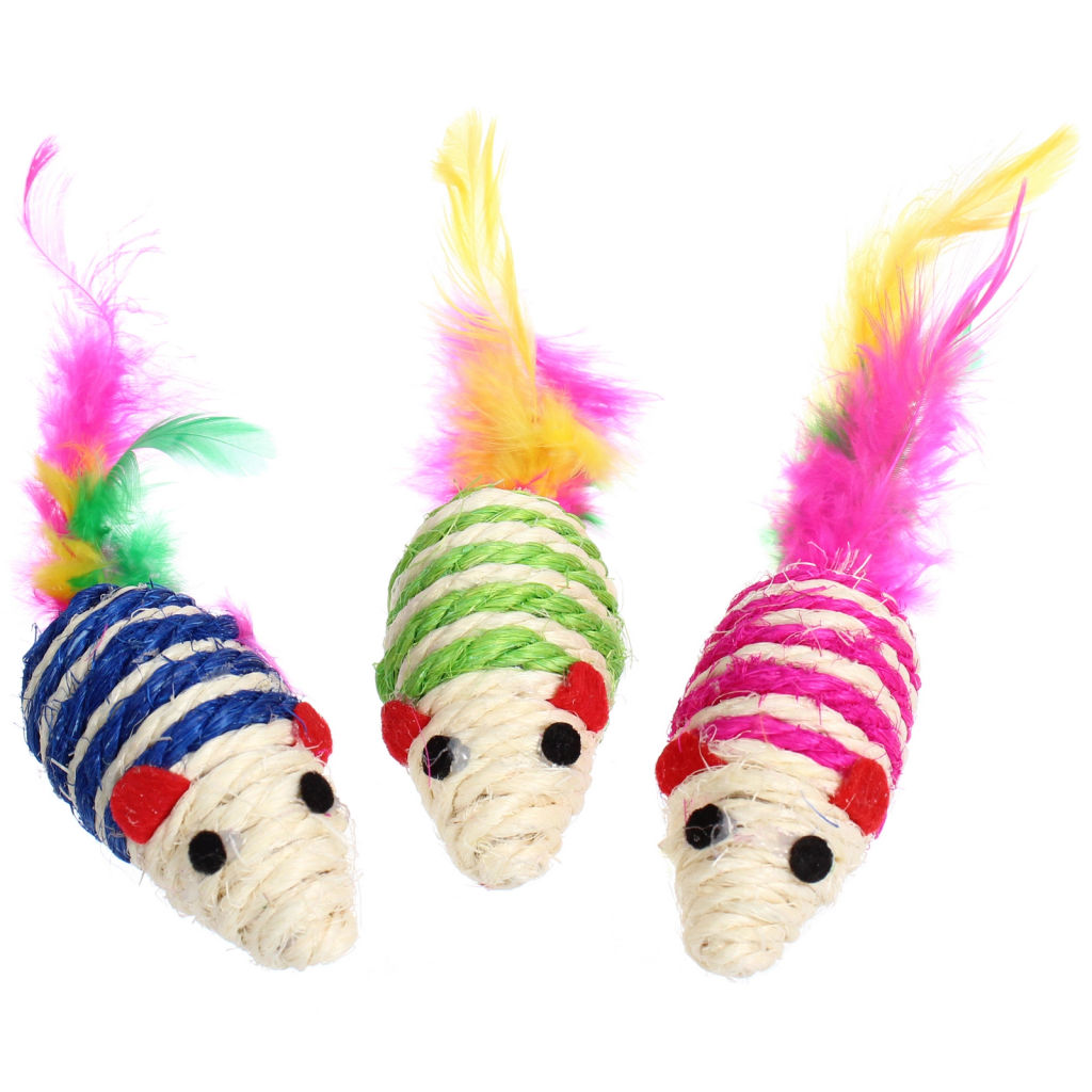 • Цена за 6 шт. Игрушка - мышка для кошек "ЦЕПКИЕ ЛАПКИ", канатная с пёрышками, микс 3 цвета, 7*3,5см (пакет с хедером)
