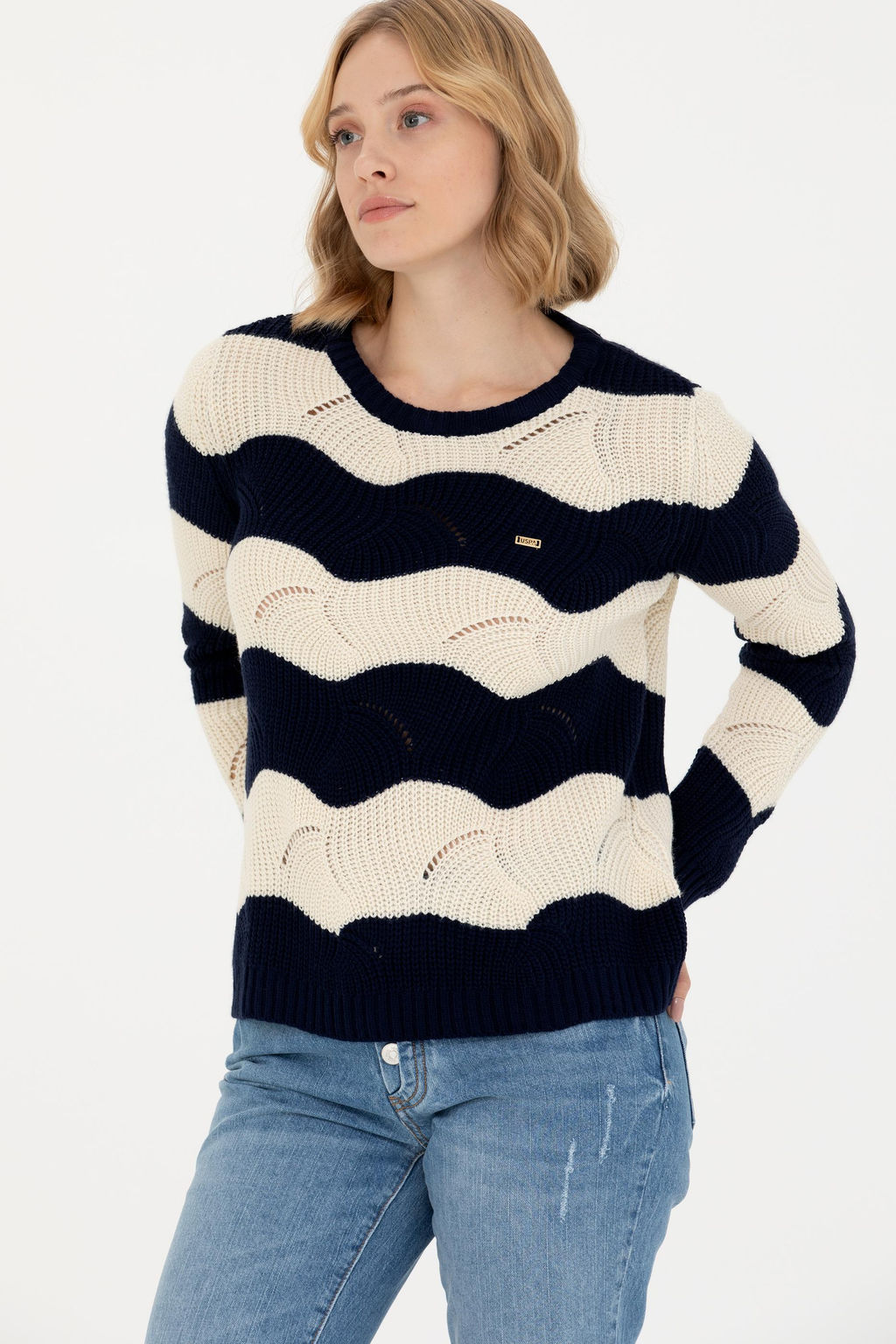 Kad_n Lacivert Bisiklet Yaka Kazak