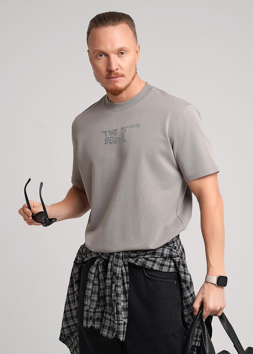 Футболка с круглым вырезом горловины и коротким рукавом. Модель выполнена из трикотажного, плотного, хлопкового полотна. Изделие дополнено дизайнерским принтом. Универсальная вещь мужского гардероба на каждый день. Состав: