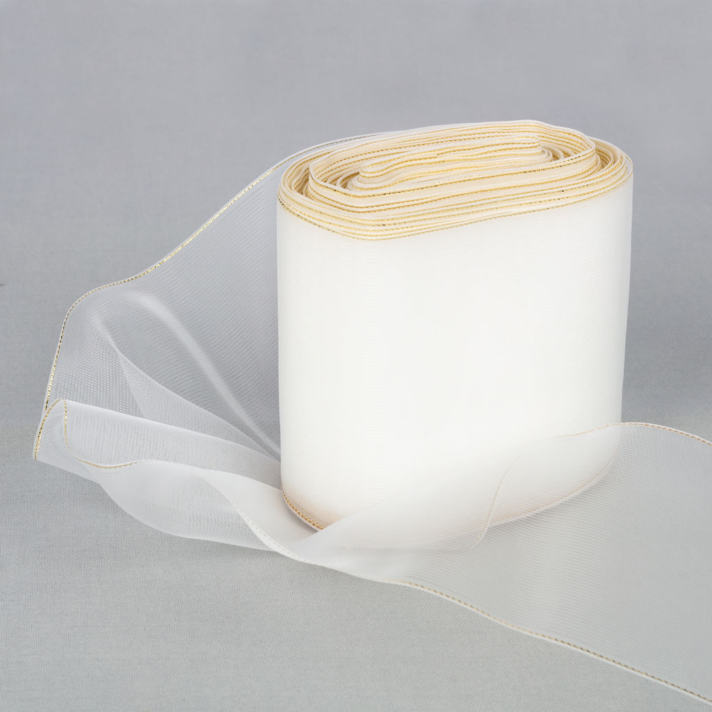 Капроновая лента с металлизированной нитью по краям. Используется для создания нарядных бантов, отделки одежды, декорирования интерьеров, изящно украсить подарок, оформить платье или шляпку. Основное свойство капрона - высокая прочность. Благодаря этому лента из капрона устойчива к истиранию и деформации