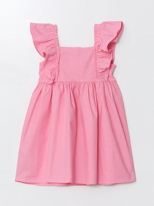 • Kare Yaka Keten Kar???ml? K?z ?ocuk Elbise
