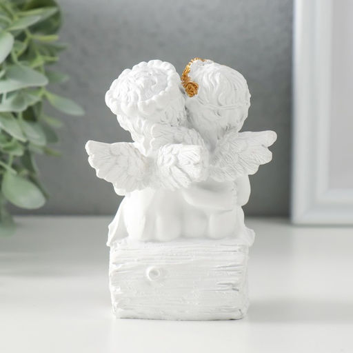 Фигурка полистоун Белоснежные ангелочки на брёвнышке - сердце и ключик, 7.5?7?10.5 см