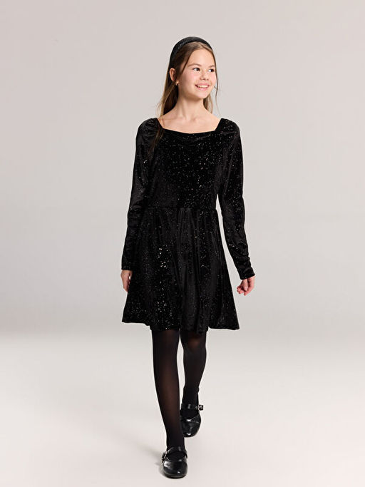 Kare Yaka Kadife K?z ?ocuk Elbise