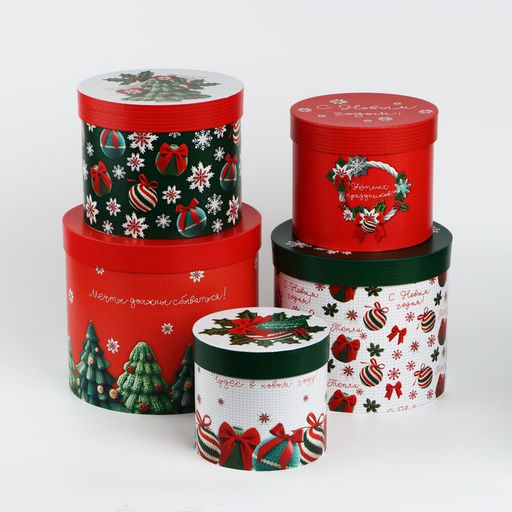 • Набор подарочных новогодних коробок 5 в 1 «С Новым годом», 13×14– 19.5×22 см