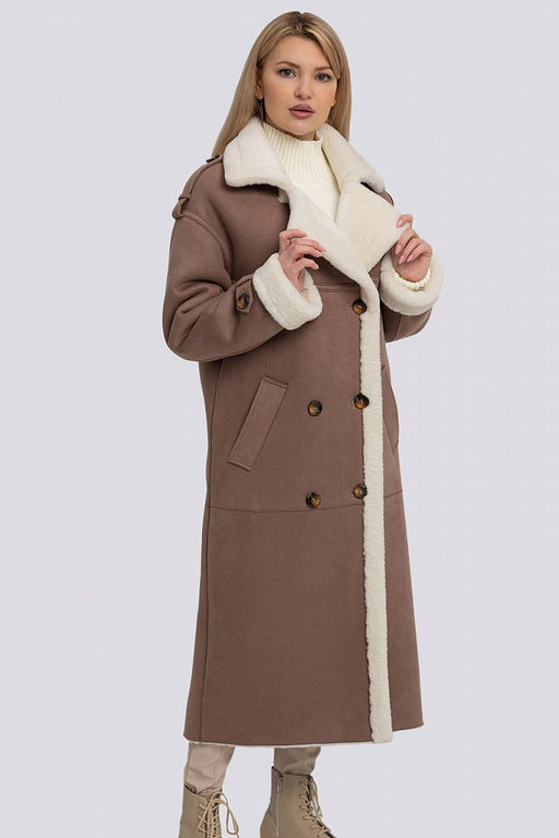 Длинная женская демисезонная дубленка из мягкого плотного экомеха. Застежка на пуговицы. Отложной воротник с лацканами и отворот рукава выполнены меховой стороной наружу. Спущенное плечо обеспечивает хорошую посадку на фигуру любого типа. Теплая и универсальная демисезонная дубленка из экозамши, которую в зависимости от погодных условий можно носить при температуре до -10 градусов.­