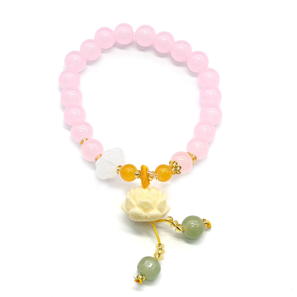 Браслет с подвеской Лотос шарик 8мм цв.розовый, 17см