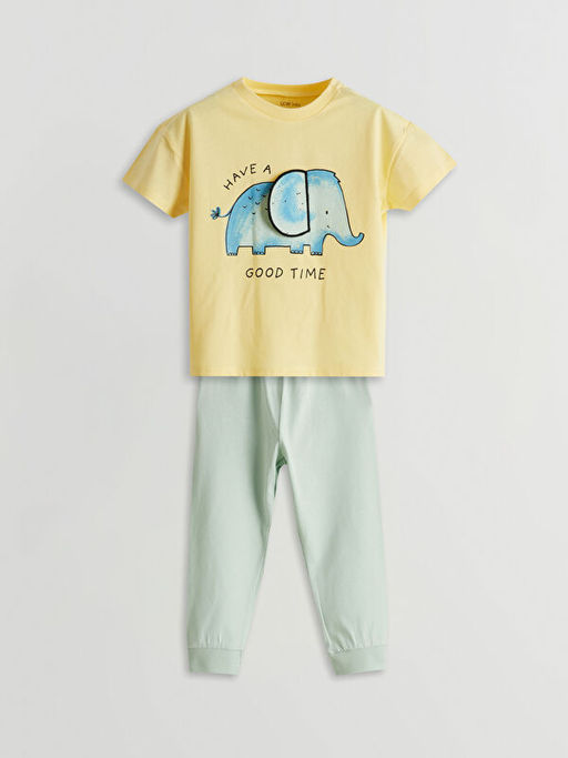 Bask?l? Erkek Bebek Ti??rt ve E?ofman Alt? 2li