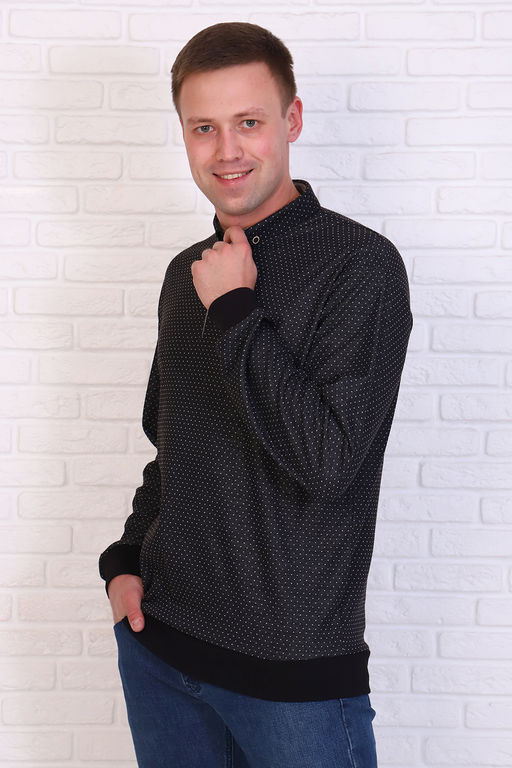 Мягкий, упругий и эластичный джемпер из жаккарда. Приятная на ощупь ткань не потеряет свой первоначальный вид после множества стирок. Модель стандартной посадки с воротником выполнена из трикотажа с узором. Актуальная модель создает непосредственный стиль в одежде. Для более свободной посадки рекомендуем приобретать на 1-2 размера больше.