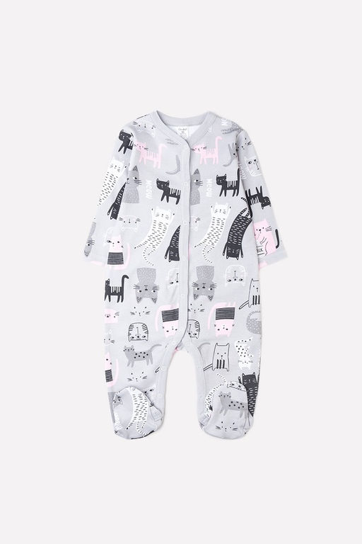 Комбинезон из хлопкового трикотажа интерлок с набивным рисунком. Длинные рукава. Застёжка на кнопки по центру и шаговым швам. В 56 размере варежки-антицарапки, швы наружу.­