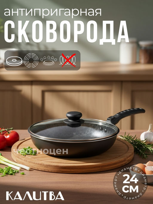 Посуда KALITVA изготавливается из первичного алюминия российского производства. Алюминия является прекрасным проводником тепла, быстро и равномерно нагревается, позволяя рационально расходовать энергию.
