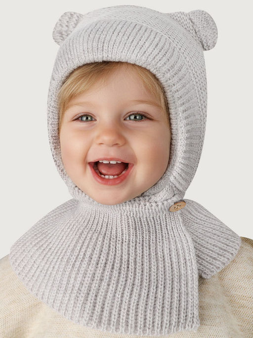 Зимняя полушерстяная балаклава шлем УМКА. Балаклава обладает удобной эргономичной формой, которая надежно и плотно облегает голову крохи, прикрывая ушки, а мягкая резинка вокруг лица не натирает и не жмет. Особенностью представленной модели является манишка, заменяющая шарф, которая регулируется по шее ребенка и застегивается на маленькую пуговку.