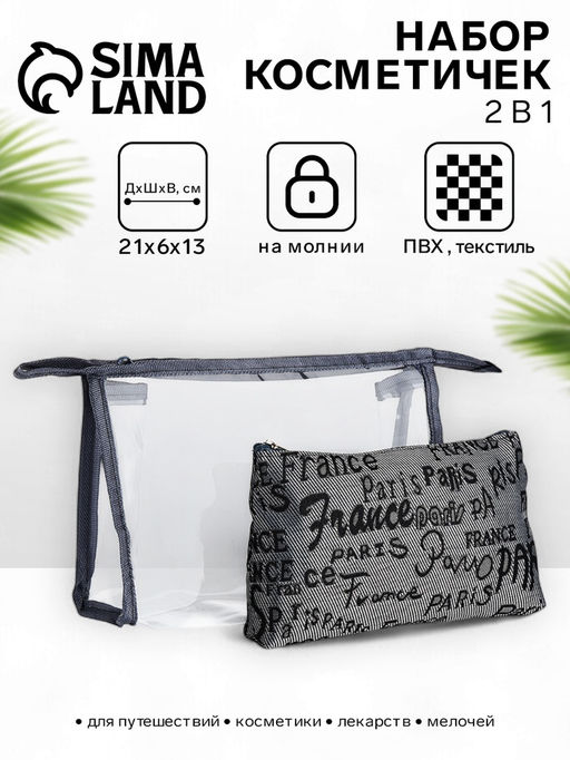 • Набор простых косметичек 2 в 1 на молниях, с надписями, серый