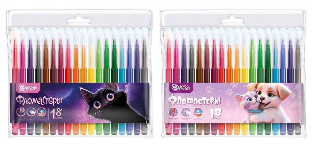 • Фломастеры Schoolformat МИКС ДЛЯ ДЕВОЧЕК классические 18 цв. круглый корпус, смываемые, бл...