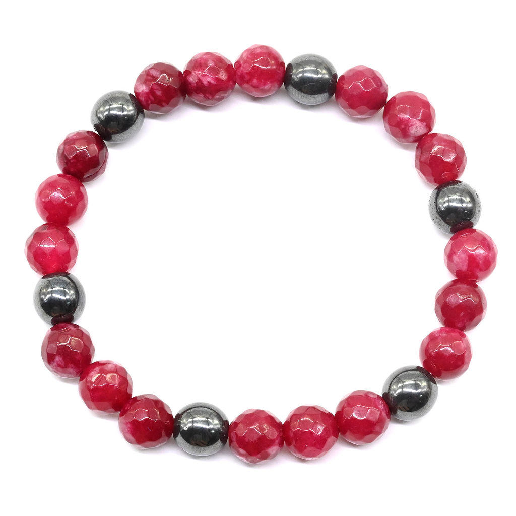 • Браслет кальцит с гематитом шарик 8мм на резинке, цвет рубин, 17см