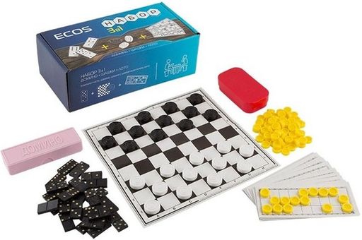 • Набор "3 в 1": шашки, домино, лото (02-136 / 006043) с шахматным полем