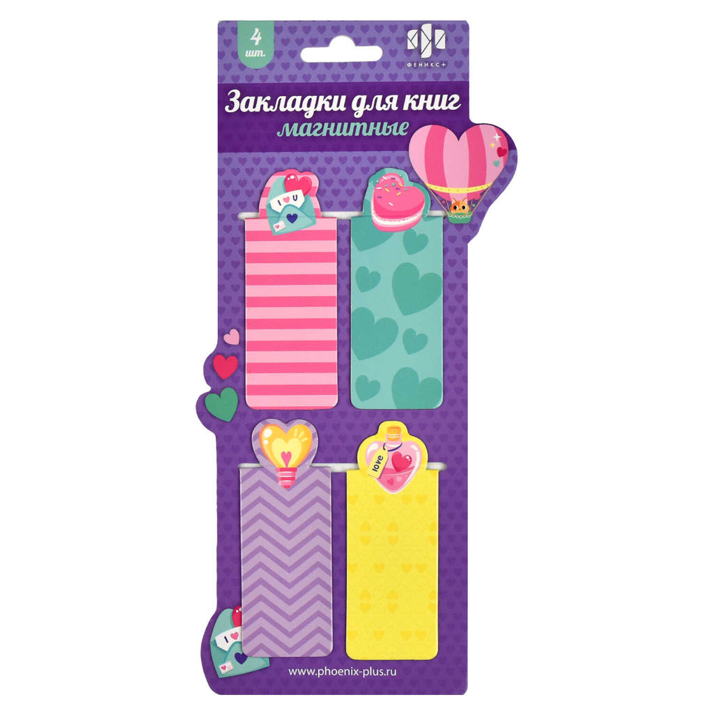 • Набор закладок магнитных для книг арт. 65047/К / 100 СЕРДЦЕ (4 шт. в наборе, размер 30x60 мм, матери