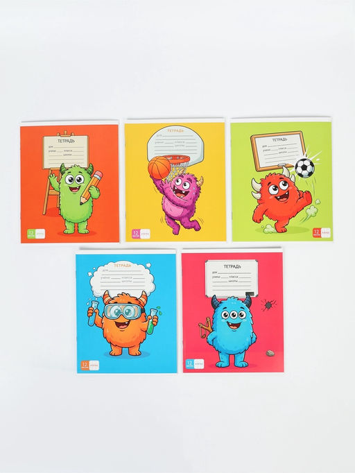 • Цена за 20 шт. Тетрадь 12 листов в клетку, 5 видов МИКС  "Монстрики"