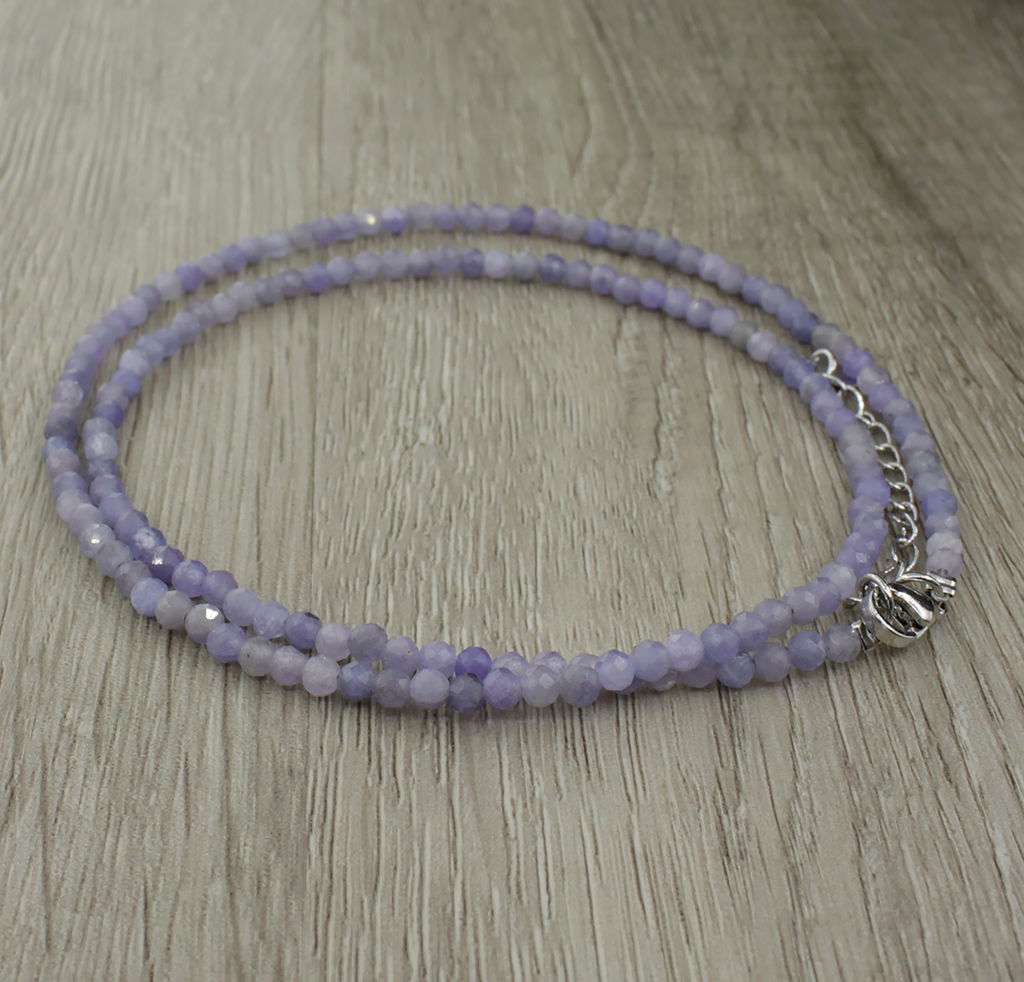 Танзанит гранёный 3мм прозрачные бусины "Соблазн", бусы длиной 48см