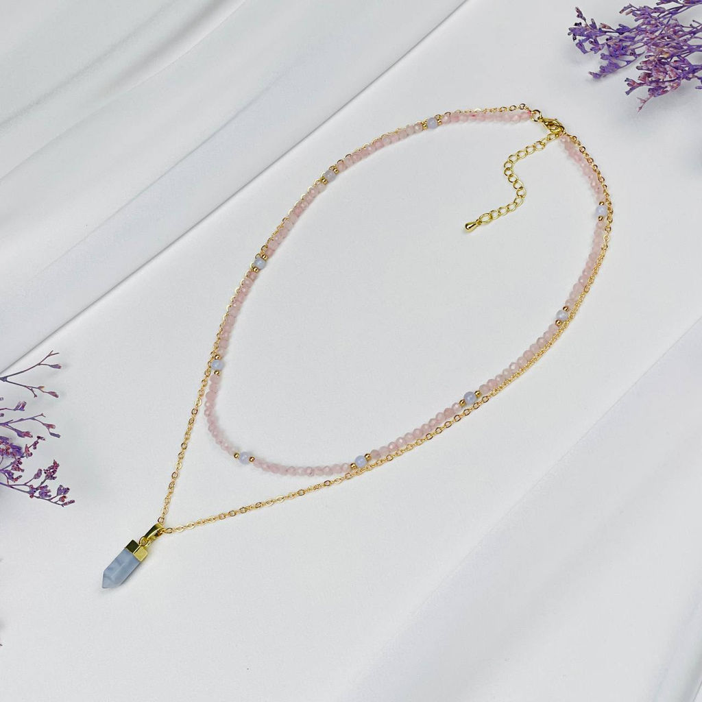 Колье двойное из Розового кварца и Голубого агата