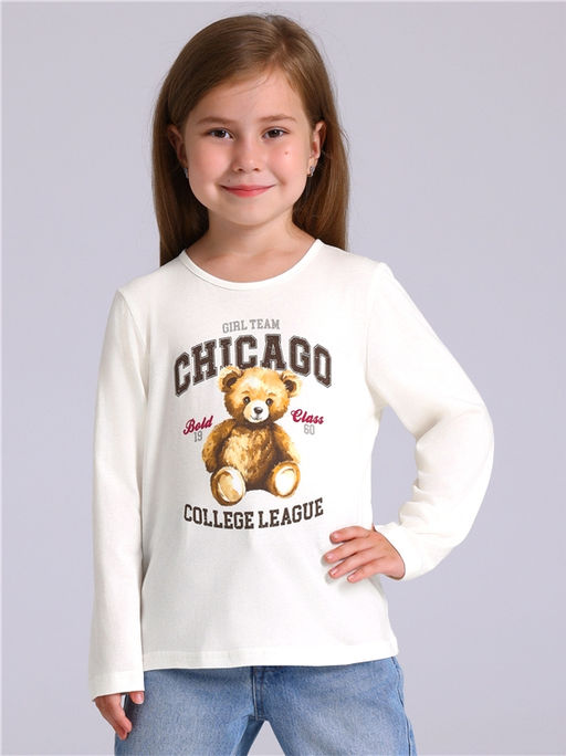 Уценка лонгслив,хлопок 100%,кулир / хлопок 100%,сливки1 / - / Тедди и Чикаго / - / - / -,Лонгслив для девочки выполнен из кулира легкого хлопкового плотна. Изделие прямого силуэта и свободного кроя, с длинными рукавами со спущенной линией плеча, вырез горловины обработан эластичной бейкой из полотна компаньона, украшено стильным принтом. Уход: только машинная стирка (руками не стирать!) при температуре 40 градусов, без предварительного замачивания. Изделия с печатью перед стиркой необходимо вывернуть на изнаночную сторону.