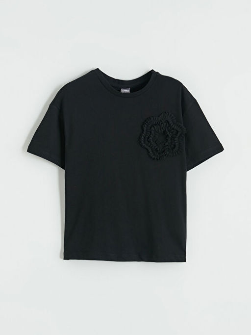 Bisiklet Yaka ?i?ek Aplikeli K?z ?ocuk Ti??rt