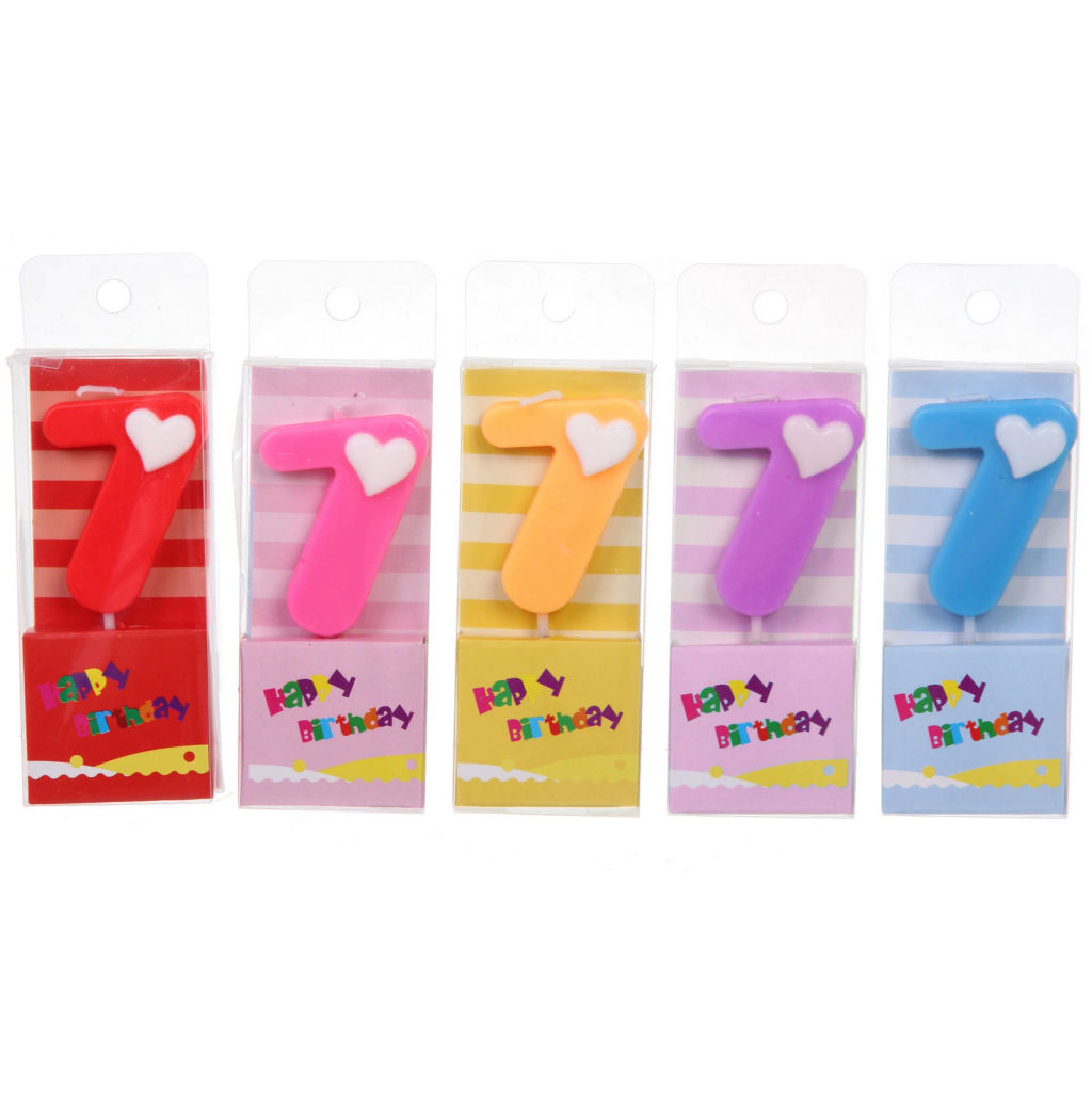 Свеча для торта Цифра Сердечко "7" 9 см, микс цветов