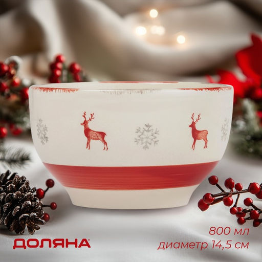 • Салатник новогодний Доляна «Легенда Севера», 800 мл, d=14.5 см, керамика, бежевый