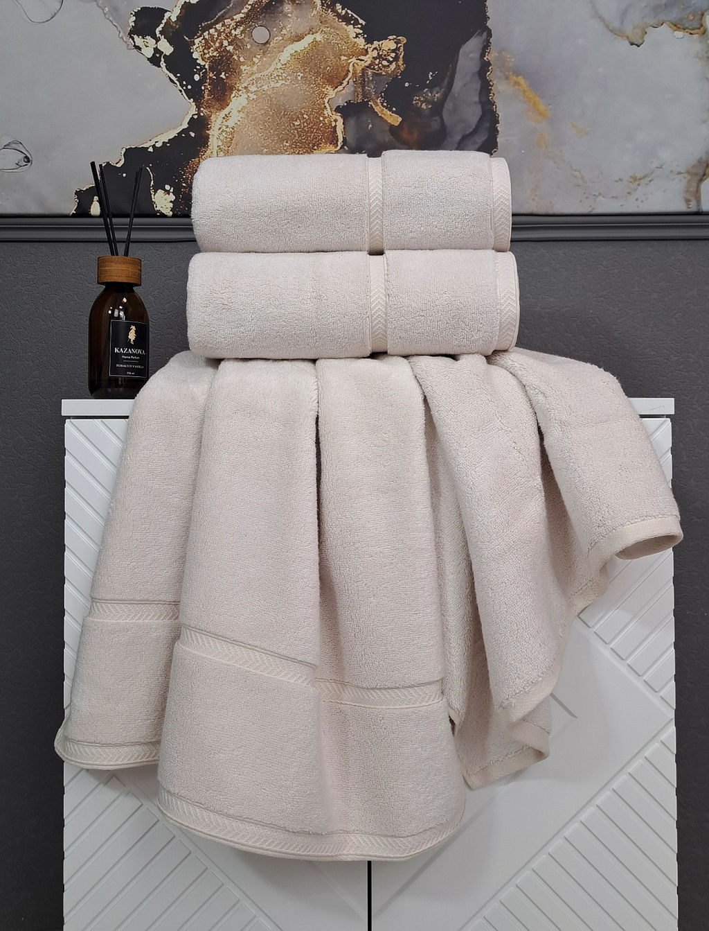 Долгожданная коллекция Турецких полотенец Рerla от компании KAZANOV.A.! Полотенца изготовлены из 100% натурального хлопка, махра из редкого волокна Zero twist (не скрученная высокая петля) - для любителей пушистых и объемных полотенец ! Коллекция Рerla обладает повышенной плотностью 650 г/м2, что обеспечивает высокую гигроскопичность (впитываемость ) и невероятную мягкость. Полотенца устойчивы к усадке, сохраняют форму, воздушную нежность даже после многократного использования, легко стираются и быстро сохнут! Такая махра используются в Премиум сегментах мировых брендов, что подчеркивает ее высокое качество. Каждая петелька буквально окутывает своей мягкостью! Дизайн коллекции выполнен в минималистичном стиле, украшен мягким хлопковым кантом жаккардового плетения! Брендированный комплект KAZANOV.A. станет стильным аксессуаром любой ванной комнаты! Представлена в нескольких видах упаковки: дизайнерская подарочная коробка для комплектов (50*90+70*140), а индивидуальный пакет на молнии для размера 50*90. Коллекция выполнена в самых популярных оттенках сезона : орхидея платина, жемчуг, латте, графит платина, деним платина.