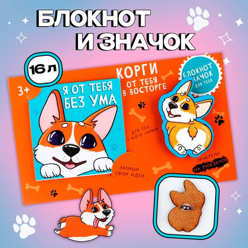 • Подарочный набор, блокнот и значок «Корги»