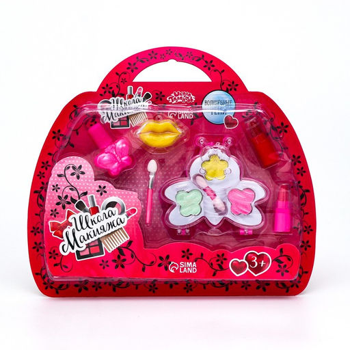 Детская косметика «Школа макияжа» позволит ребёнку экспериментировать со стилем. Набор поможет девочке подобрать оптимальные варианты для вечерних и дневных образов. Косметика без труда смывается водой или с помощью ватного диска и безопасна для детской кожи. В набор входят:тени: 3 цвета;блеск для губ;2 помады для губ;лак для ногтей;2 аппликатора.Рекомендовано для детей старше 3 лет. Набор: Да. Для кого: Для девочки. Возраст: От 3 лет. Тематика праздника: 8 Марта. Тематика праздника: День рождения. Тематика праздника: Новый год. Составляющие набора: Тени. Составляющие набора: Лак для ногтей. Составляющие набора: Блеск. Составляющие набора: Помада. Бесплатная доставка: Да. Размеры товара: 26/22.5/3. Примечание: Дата изготовления зависит от партии поставки.. Примечание: Косметика гипоаллергенна и безопасна для детей, легко смывается водой.. Примечание: Возможна индивидуальная непереносимость компонентов продукта. Рекомендуем проверить на аллергическую реакцию перед применением, нанеся средство на запястье или внутренний сгиб локтя..