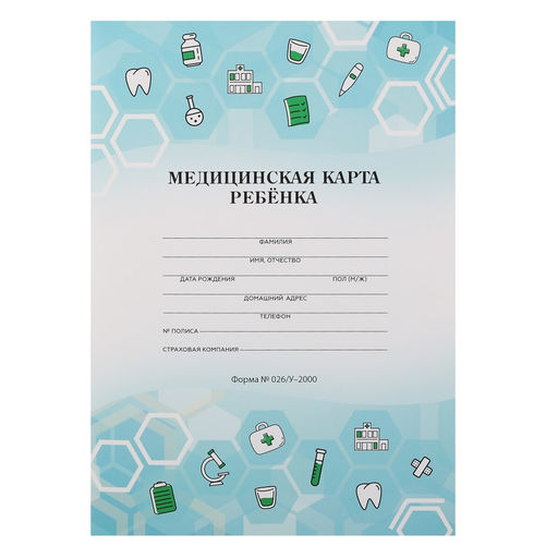 • Бланк "Медицинская карта ребенка" А4, 16л., офсет, карт.обл. (ф.026/У, 16-4938, "Prof-Press") "Медицинская тематика"