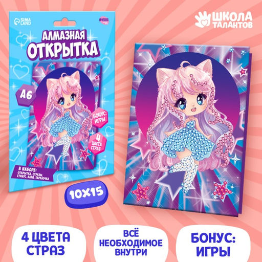 • Алмазная мозаика с частичным заполнением на открытке Милая девочка для детей