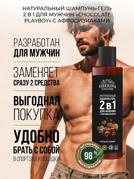 Описание товара НАТУРАЛЬНЫЙ ШАМПУНЬ-ГЕЛЬ 2 в 1 ДЛЯ МУЖЧИН CHOCOLATE PLAYBOY С АФРОДИЗИАКАМИ