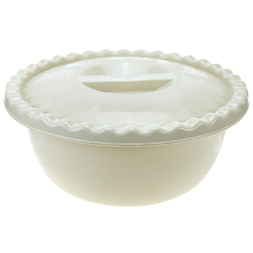 • Миска пластмассовая 5л, д30см, h13см, с крышкой, белый ротанг (Россия)
