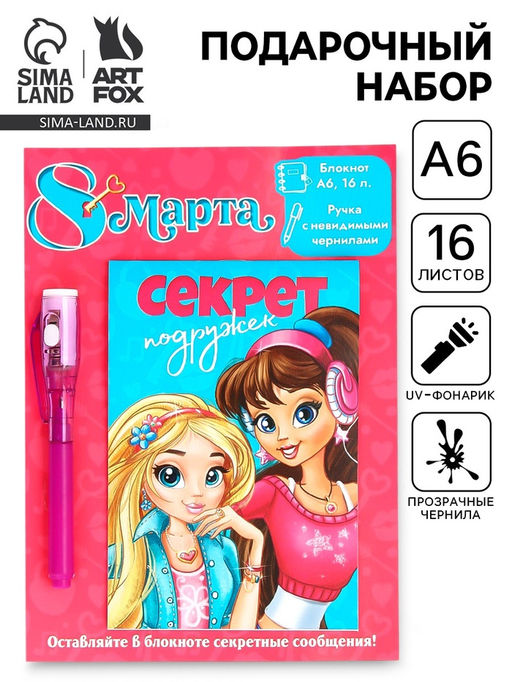 • Подарочный набор 8 марта: Секреты подружек, волшебная ручка и блокнот