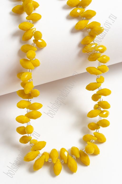 • Бусины стеклянные, матовые, на леске "Капля с верхним отверстием" 6*12 мм (SF-671) желтый №509