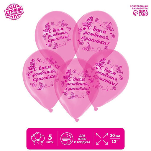 Цена за 2 шт. Воздушные шары латексные 12" «С Днем рождения, красотка», кристалл, 5 шт.