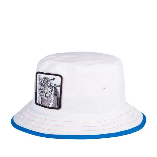 Панама с тигром TIGRE LIBRE из коллекции Animal Farm от культового американского бренда GOORIN BROTHERS. Белая панама-ведро с яркими акцентами выполнена из чистого хлопка. Спереди головной убор украшает нашивка с изображением тигра и надписью TIGER, которую можно перевести как тигр, а с американского сленга трактовать как самостоятельный, независимый, предприимчивый человек.Тулью панамы украшают люверсы по бокам. Акцентная деталь сзади миниатюрная нашивка с фирменным логотипом бренда в виде старинного белого замка на черном фоне. Поля оторочены тканью ярко-синего цвета. По окружности головы предусмотрена лента для комфортной посадки и ярко-оранжевая хлопковая подкладка. На ленте фирменная нашивка с датой основания бренда 1895. Модель подбирается в соответствии с таблицей размеров. Глубина 13,5 см, ширина полей 6 см. Панамы давно реанимированы стритстайлом из дачного в ультрамодный и практичный аксессуар.