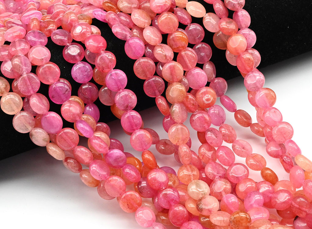 • Бусины из агата тонированного круг 10мм цв.розовый, 36см, 37 бусин Радуга камня