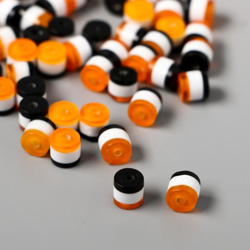 • Бусины для творчества пластик "Цилиндр чёрно-рыжий-белый" набор 10 г, 0,6х0,55х0,55 см