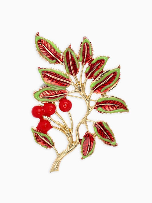 • Брошь "Веточка Калины", цвет красно-коричневый в золоте