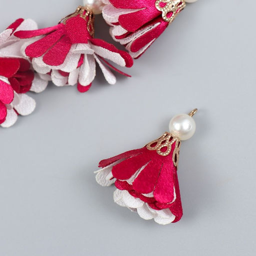 • Декор текстиль Цветок 2 с жемчужиной. Малиновый и белый, набор 6 шт., 3 см
