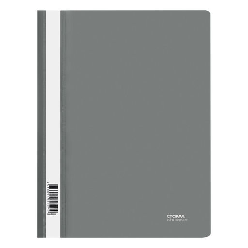 Цена за 5 шт. Скоросшиватель пластиковый А4 СТАММ, 180мкм, серый (MM-30909) с прозр. верхом