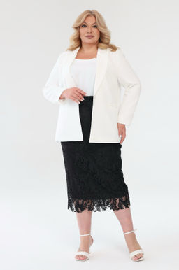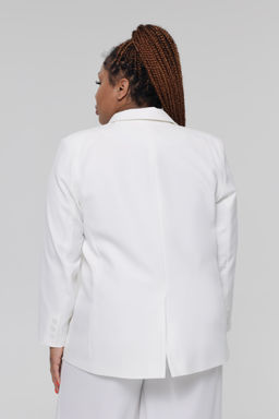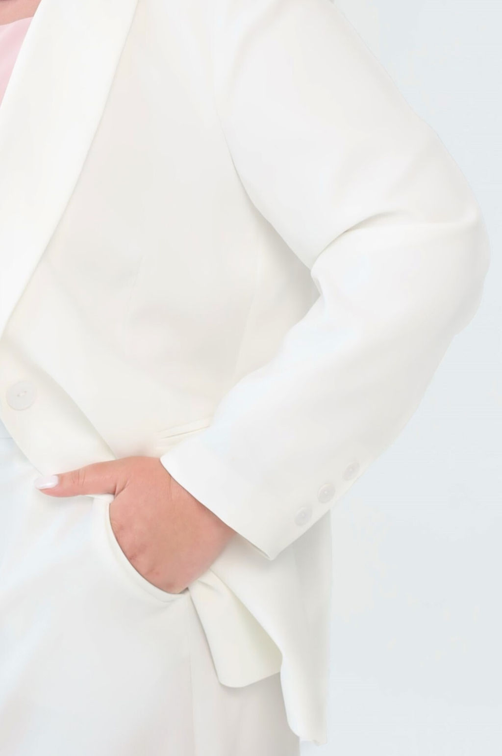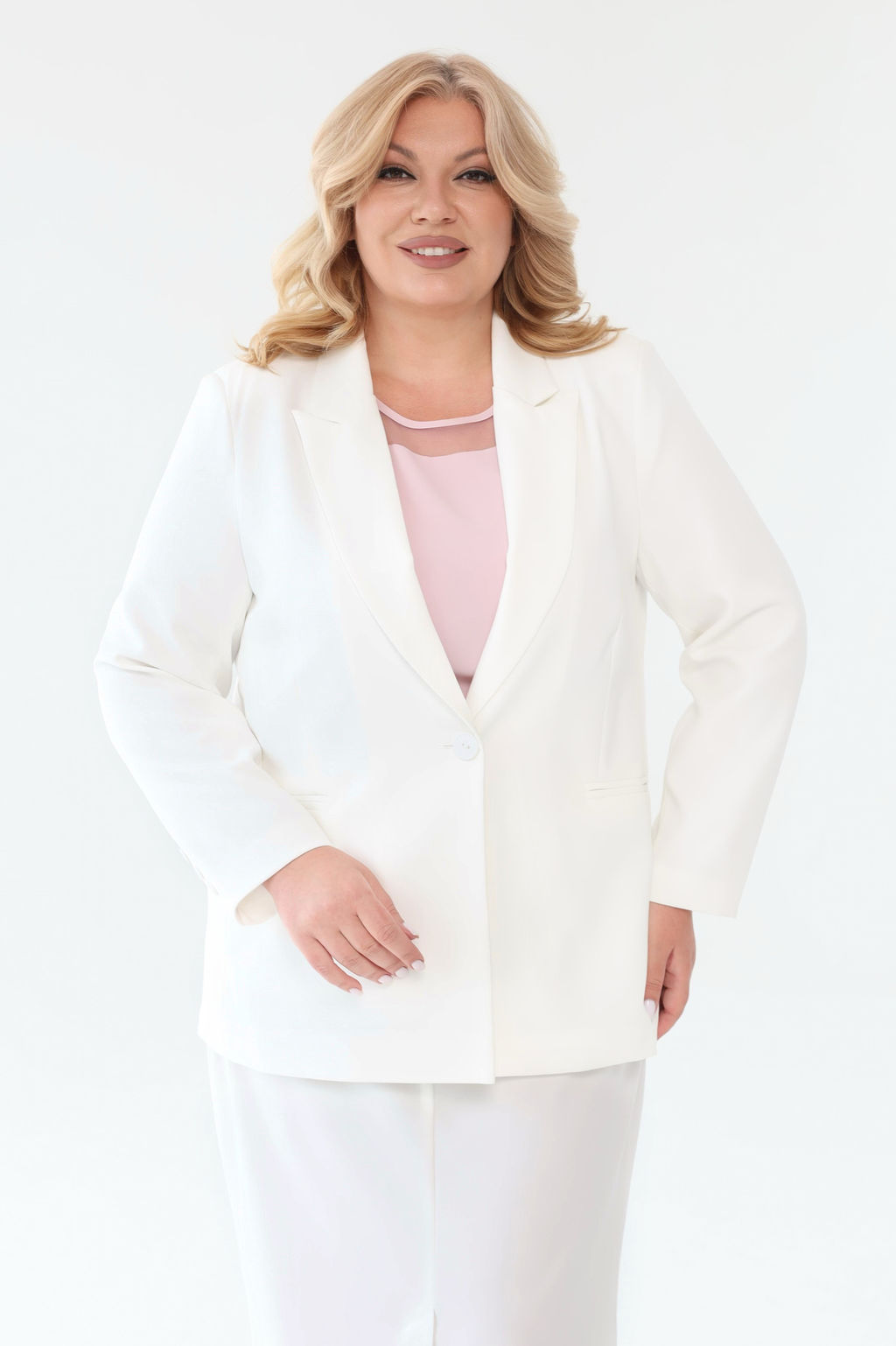 Элегантный жакет прямого кроя из мягкого материала на подкладке. V-образный вырез оформлен классическим отложным воротником с лацканами. Имеет рукава полной длины. Аккуратные подплечники зрительно вытягивают силуэт и делают бедра визуально у?же. Вытачки на груди способствуют оптимальной посадке по фигуре. Модель застёгивается на оригинальную пуговку, что добавляет модели практичности и оригинальности. По бокам декоративные прорезные карманы Этот модный жакет станет идеальным дополнением для повседневного стильного образа.­