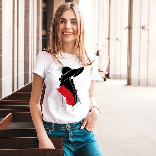 Каждый кристалл приклеивается вручную, что подтверждает прохождение 3-го этап контроля качества футболки и отсутствия производственного брака.