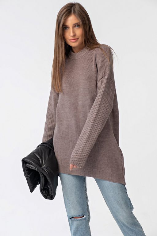 Джемпер вязаный удлиненный асимметричный ореховый