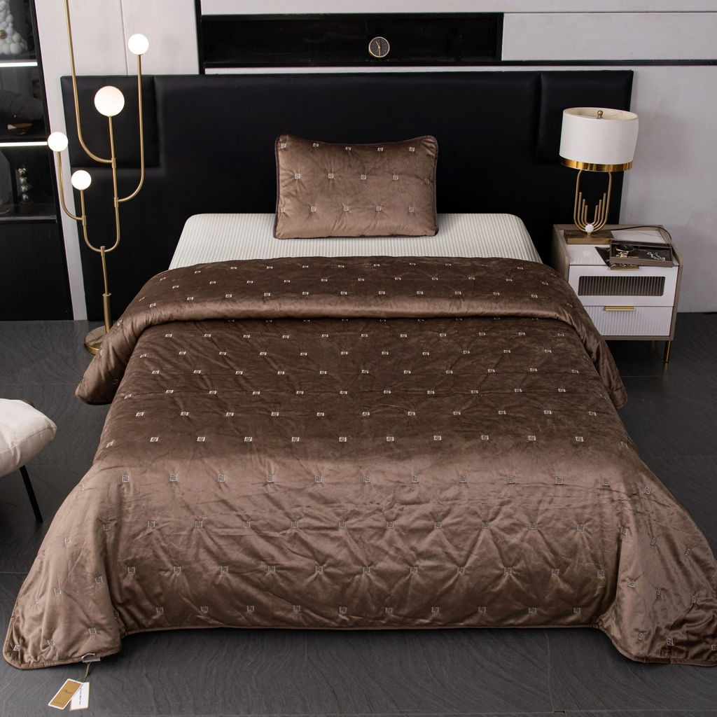 Погрузитесь в атмосферу роскоши и комфорта с велюровым покрывалом Grande/Грандэ от бренда VIVA - HOME TEXTILE. Оно добавит вашему дому изысканности, создавая уютное пространство для отдыха. Велюровая текстура придает интерьеру особый шарм, а его высокое качество гарантирует долговечность и простоту ухода. В комплект также входят декоративные наволочки/наволочка в едином стиле, с дизайном на лицевой стороне. Перед использованием рекомендуется отпарить покрывало, чтобы устранить складки, которые могли образоваться во время транспортировки и хранения товара. Материал: Бархат-велюр Состав материала: 100% пэ Наполнитель: Высокосиликонизированное микроволокно Состав наполнителя: 100% пэ Упаковка: Сумка ПВХ на молнии с ручками Изображения, элементы, расположение рисунка и цвет представленного на упаковке товара могут незначительно отличаться от оригинала. Размеры: 1.5 спальное Покрывало: 160*220 см Наволочка: 50*70 см 1 шт. (с запАхом) Евро Макси Покрывало: 240*260 см Наволочка: 50*70 см 2 шт. (с запАхом) -- Характеристики -- Габариты: 58 x 45 x 12 см Вес: 2,5 кг Транспортировочная упаковка: 47.000/37.000/10.000 Цвет: Шоколадный, Коричневый Яндекс Видео: https-//disk.yandex.ru/i/849-hlKQmcpPcg Яндекс Фото: https-//yadi.sk/d/_9-0s7n3VCLYgQ Материал: Бархат-велюр Состав материала: 100% пэ Наполнитель: Высокосиликонизированное микроволокно Состав наполнителя: 100% пэ Упаковка: Сумка ПВХ на молнии с ручками Покрывало: 160*220 см Наволочка: 50*70 см 1 шт. (с запАхом)