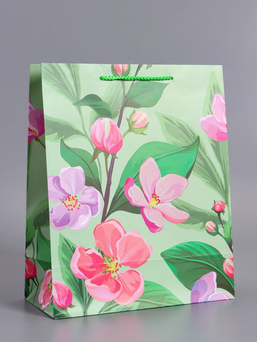 • Пакет подарочный ламинированный «Весеннее признание», зелёный, 26×12×32 см